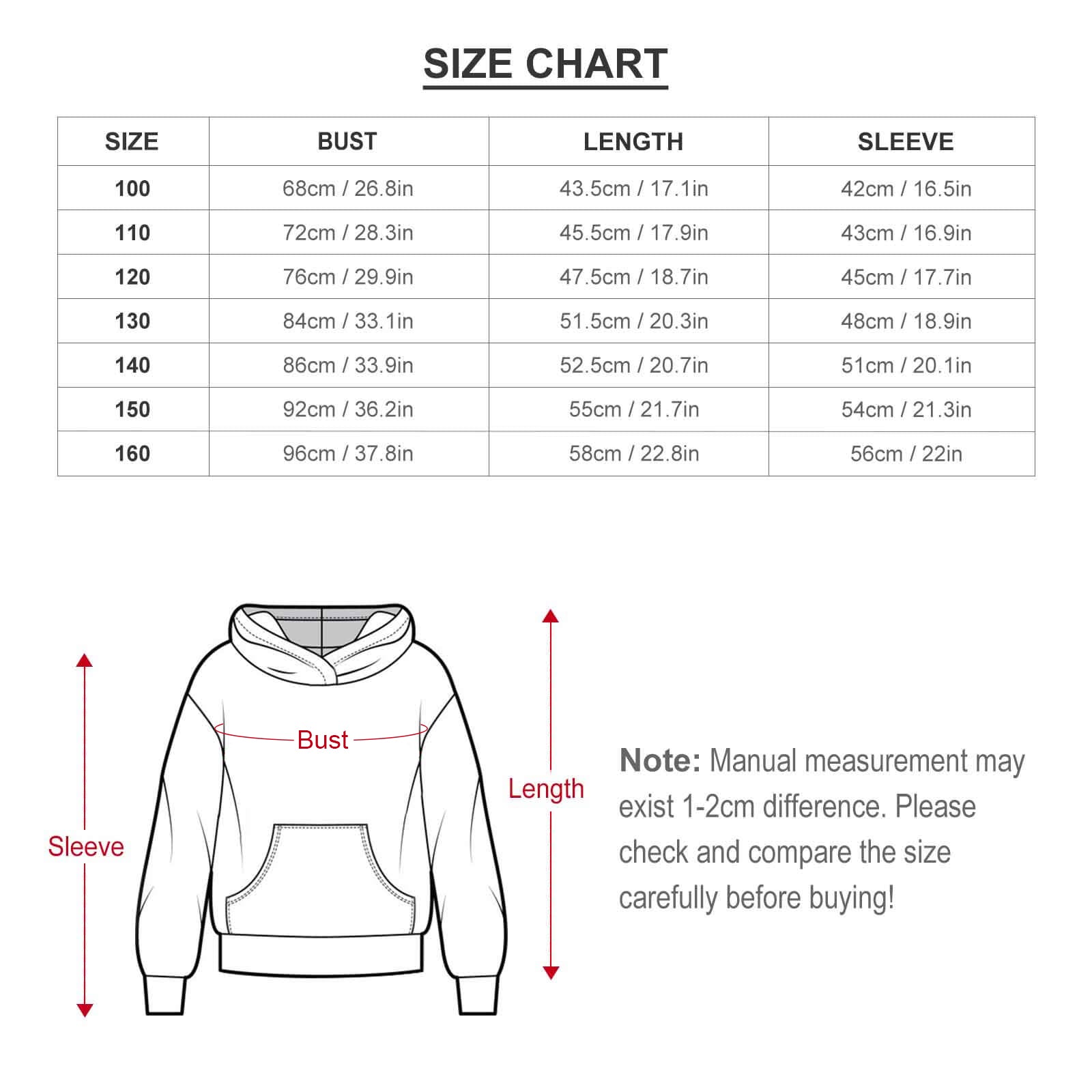 【 特别说明 】如有疑问,请联系客服咨询,此尺码数据在平铺下测量所得,因测量方法不同,误差在1-2cm内的属于正常现象。将不予纳入售后处理范畴。