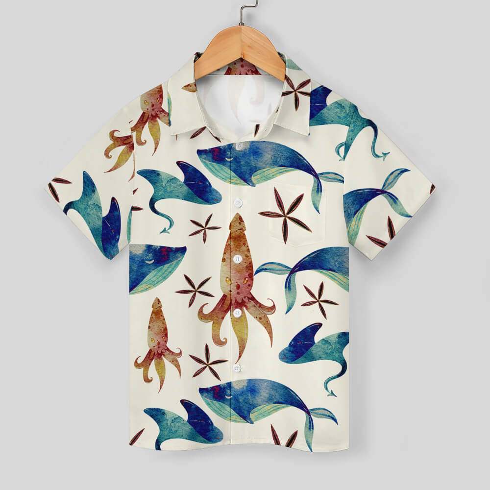中文名称 : 儿童翻领带口袋短袖衬衫225 (单图) 图文定制设计