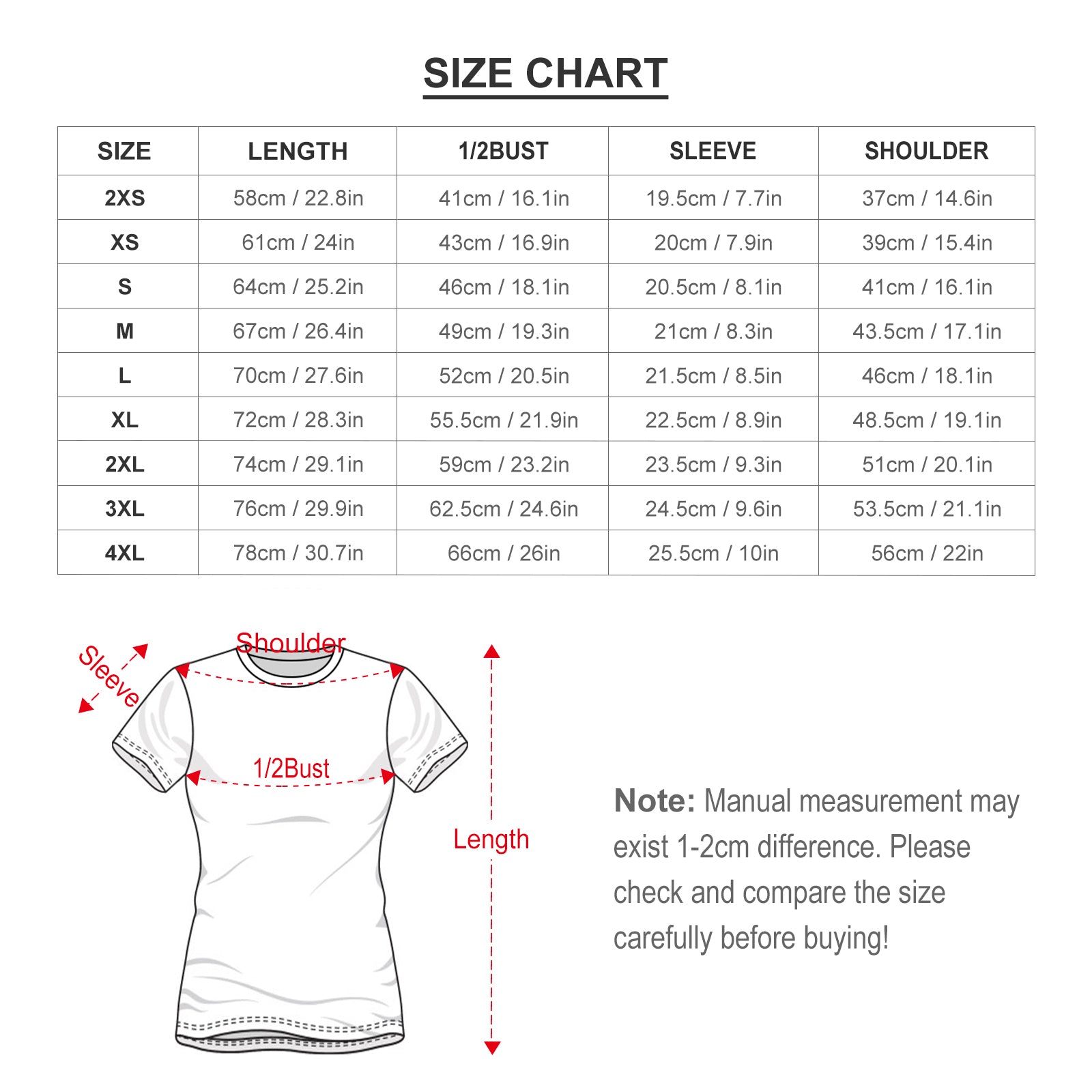 【 特别说明 】注意:该产品均为欧码。如有疑问,请联系客服咨询,此尺码数据在平铺下测量所得,因测量方法不同,误差在1-2cm内的属于正常现象。设计图片请勿使用与衣服底色相同颜色,生产时会造成无法出墨情况,将不予纳入售后处理范畴。