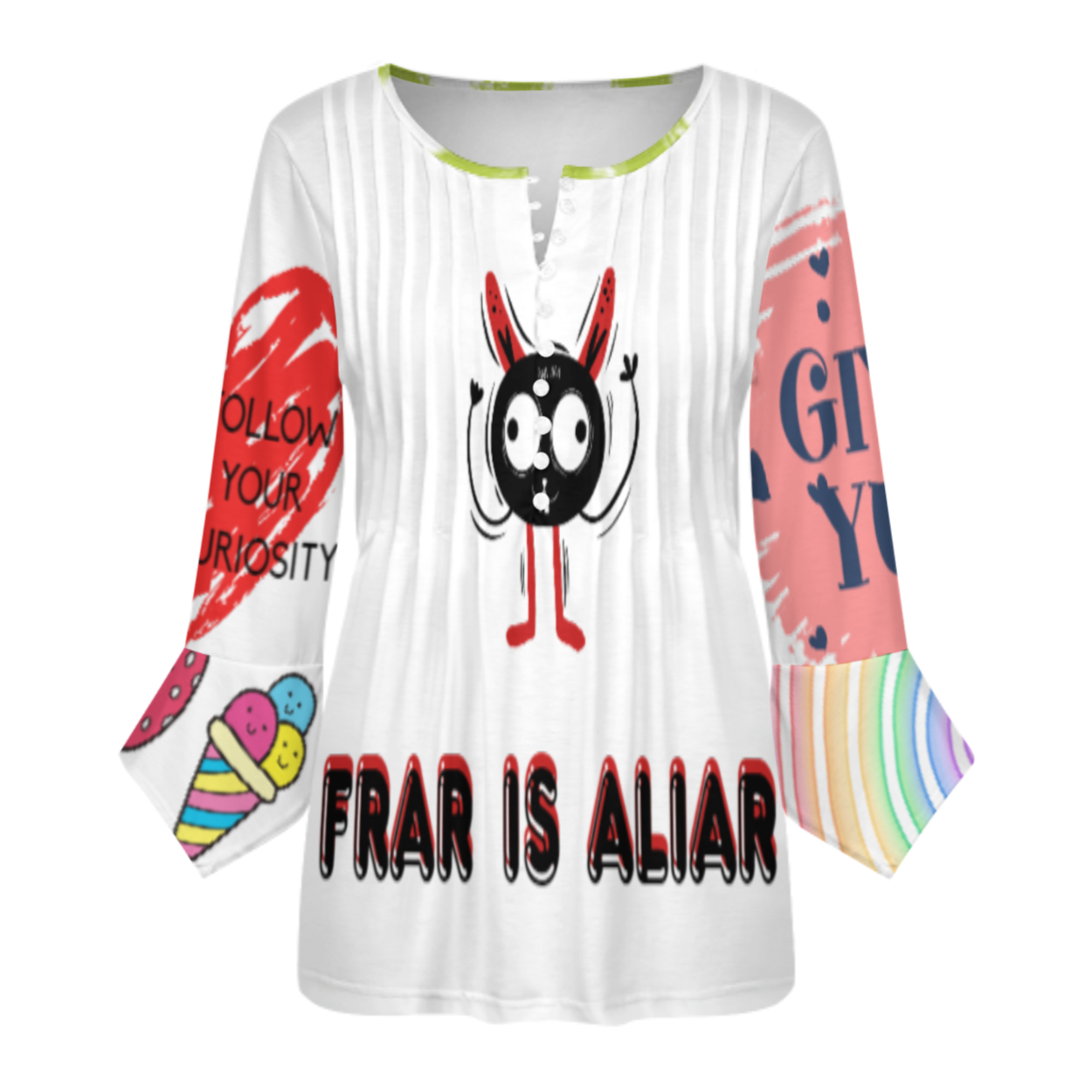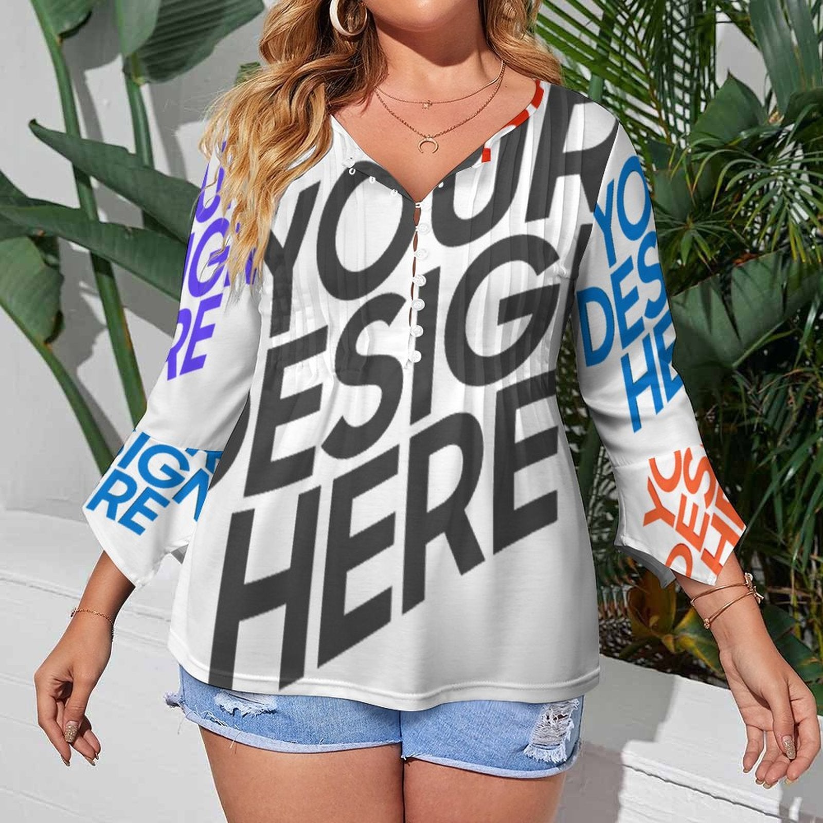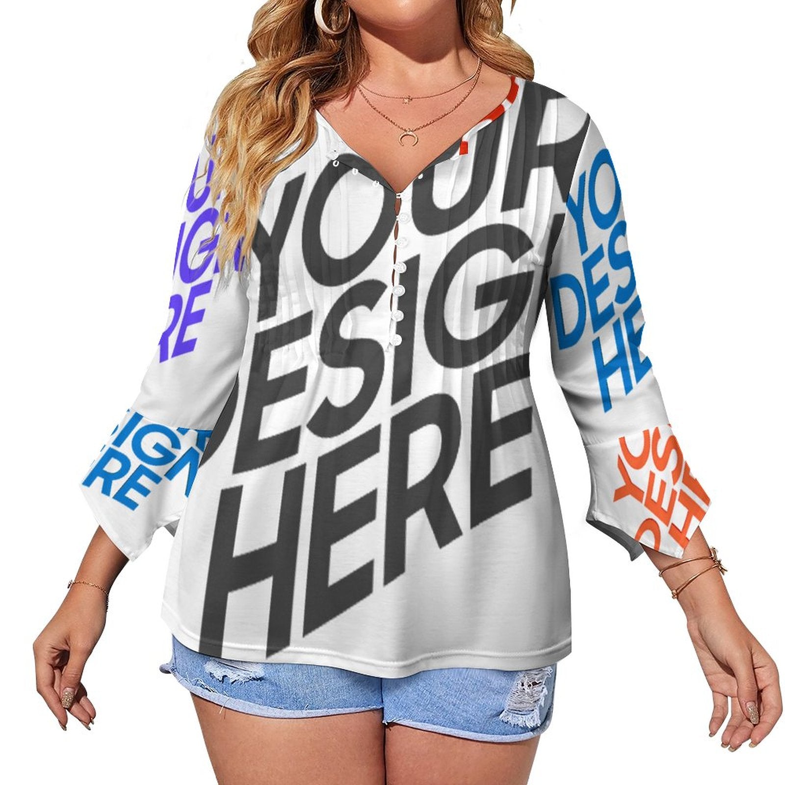女式十粒扣褶皱花瓣袖上衣SDS20150 (多图) 图文定制设计