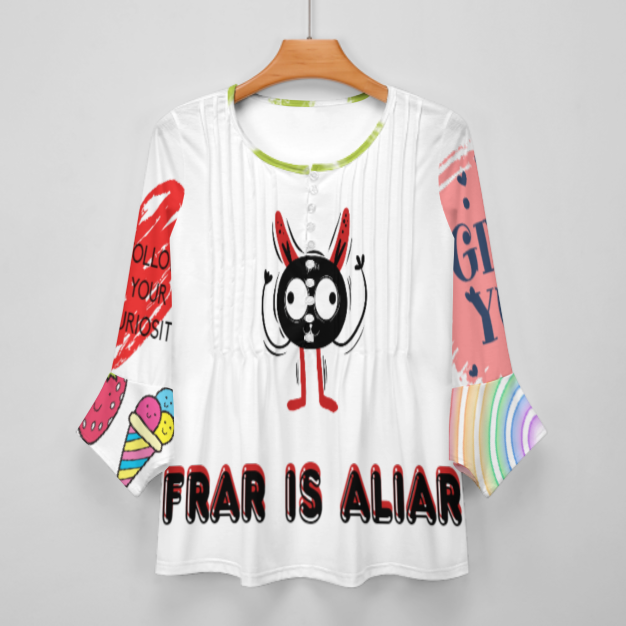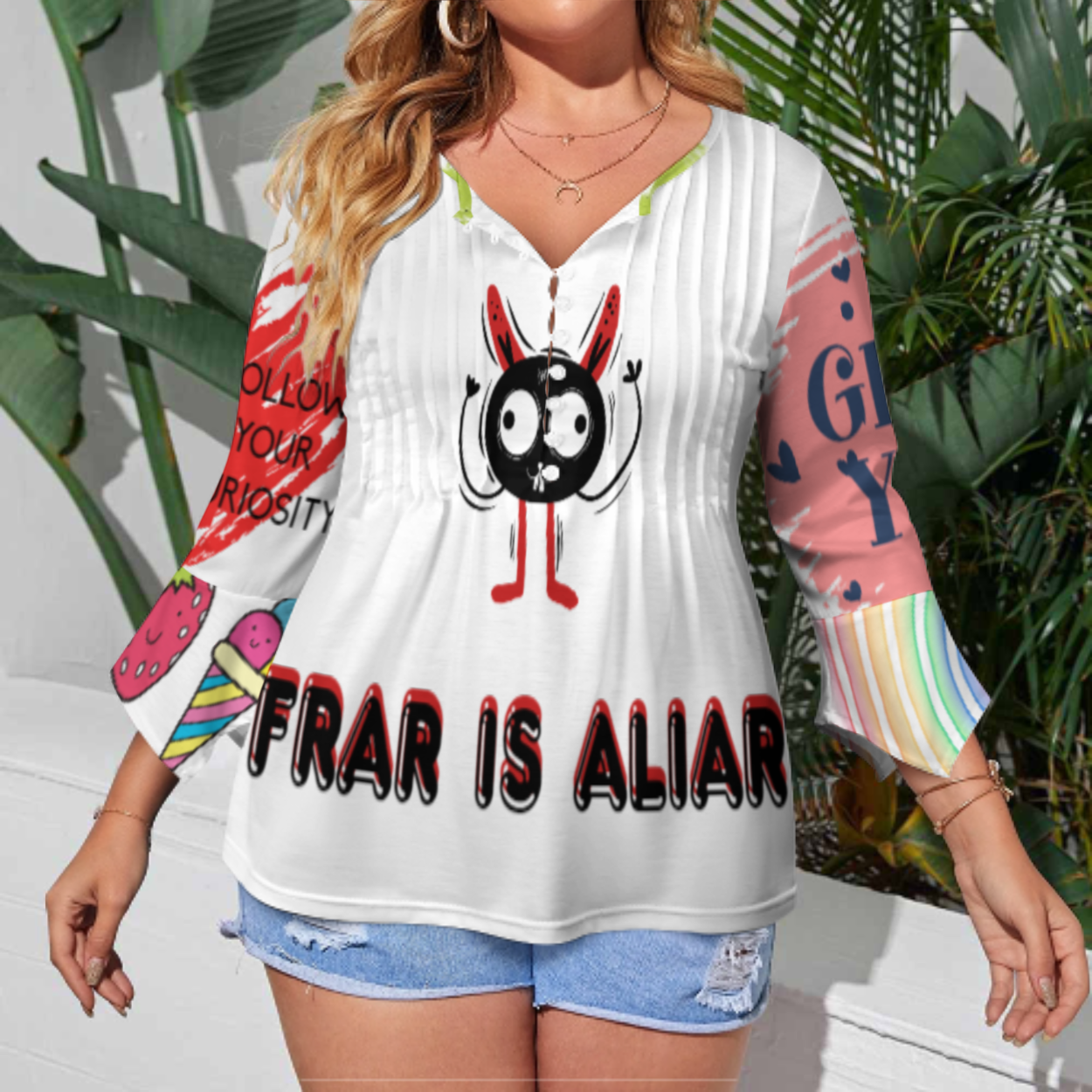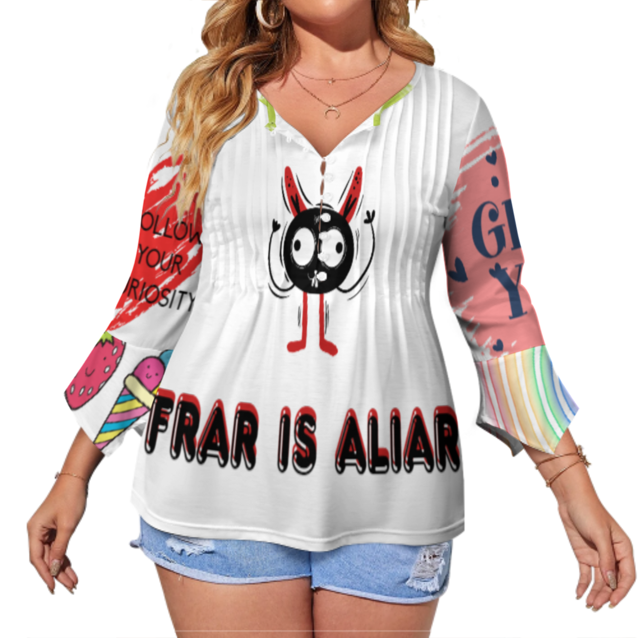 女式十粒扣褶皱花瓣袖上衣SDS20150 (多图) 图文定制设计