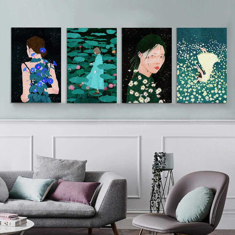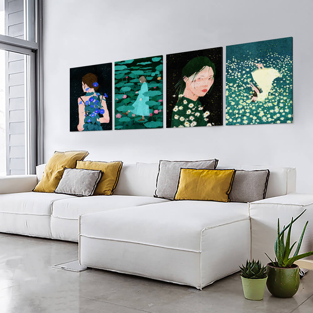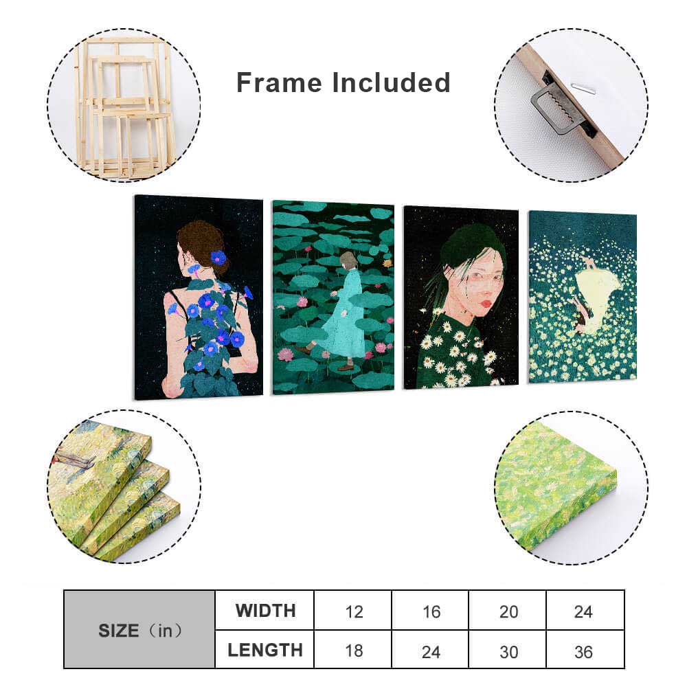 2. 规格:为单幅挂画的尺寸,挂画共4联。