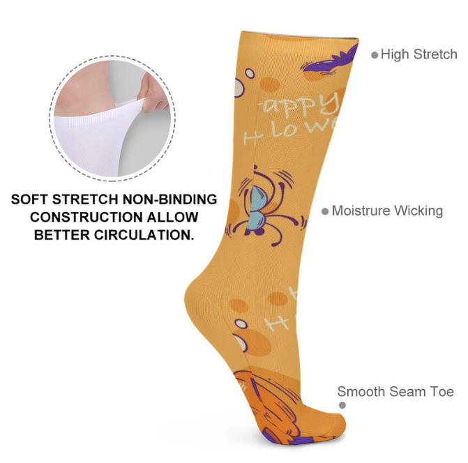 1. 柔软舒适:大化纤具有更好的吸收性和舒适性,吸汗排汗,透气,轻便,耐磨;微厚,袜口不勒腿,不易滑落,它对您的皮肤温和,适合室内和室外活动。数码印花技术不易褪色,保持色彩鲜亮,设计上你喜欢的图案,满足时尚和舒适的双重效果。