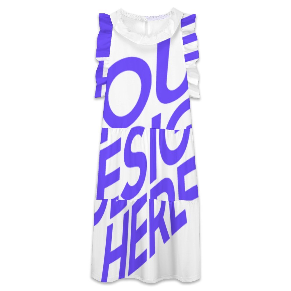 荷叶边立领高腰连衣裙F11Q图文定制设计