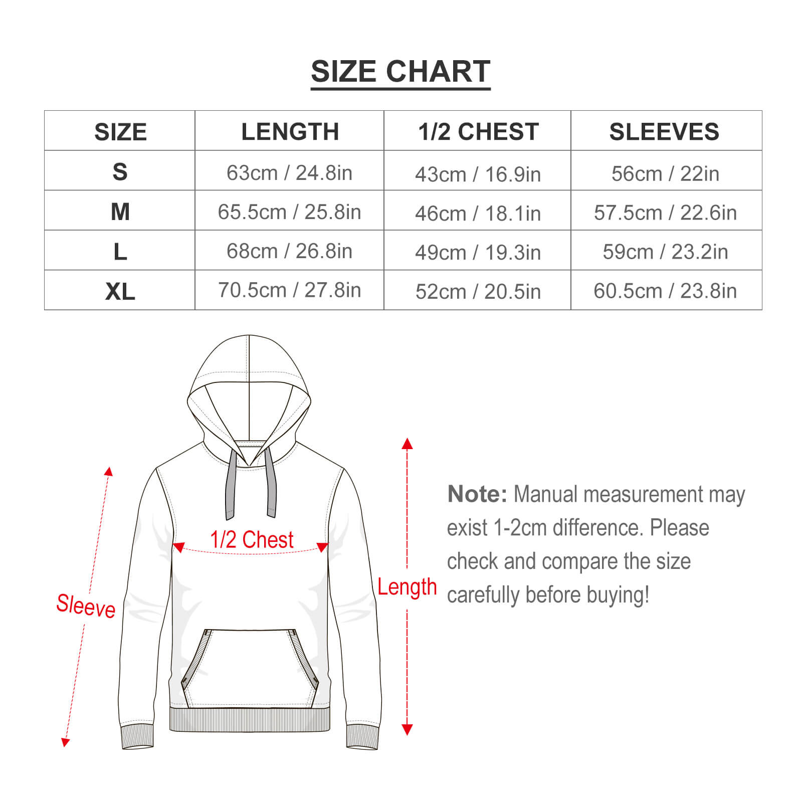 【 特别说明 】如有疑问,请联系客服咨询,此尺码数据在平铺下测量所得,因测量方法不同,误差在1-2cm内的属于正常现象。将不予纳入售后处理范畴。