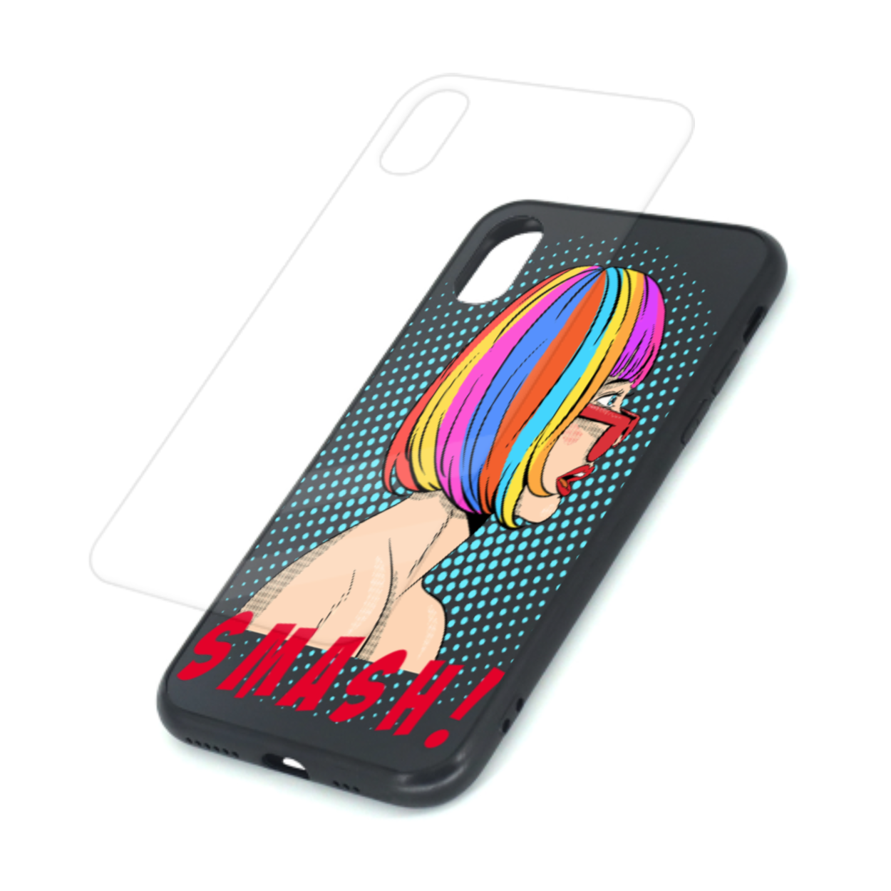 中文名称 : iPhone XS黑色TPU玻璃手机壳图文定制设计